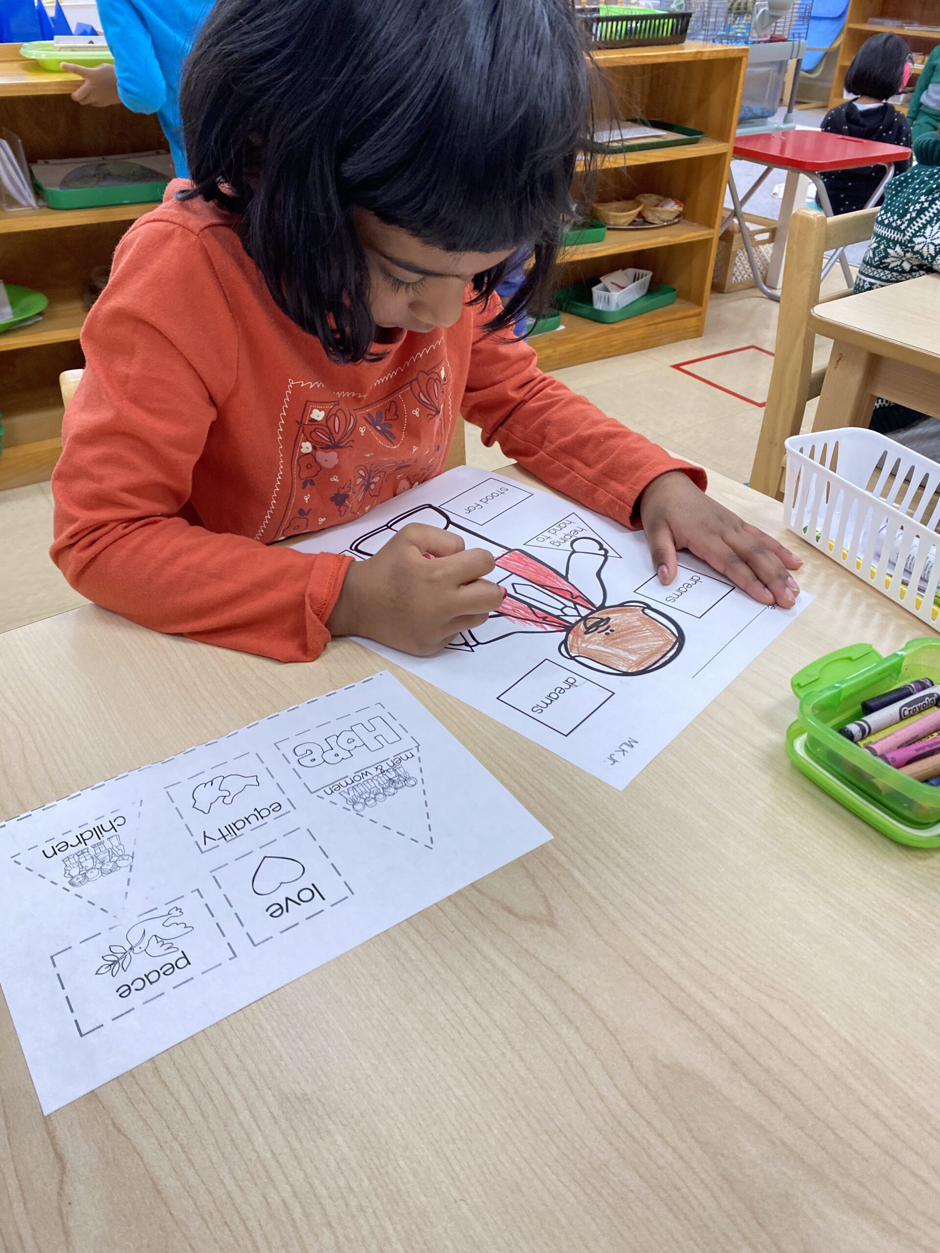 At The Glen, Peace Education is not just a subject; it’s a way of life. It permeates every lesson and every interaction, both in and outside the classroom. From resolving playground conflicts peacefully to discussing the legacies of peacemakers like Dr. King, Dr. Montessori, and Gandhi, we instill the values of dignity, respect, and equality in our students every day.