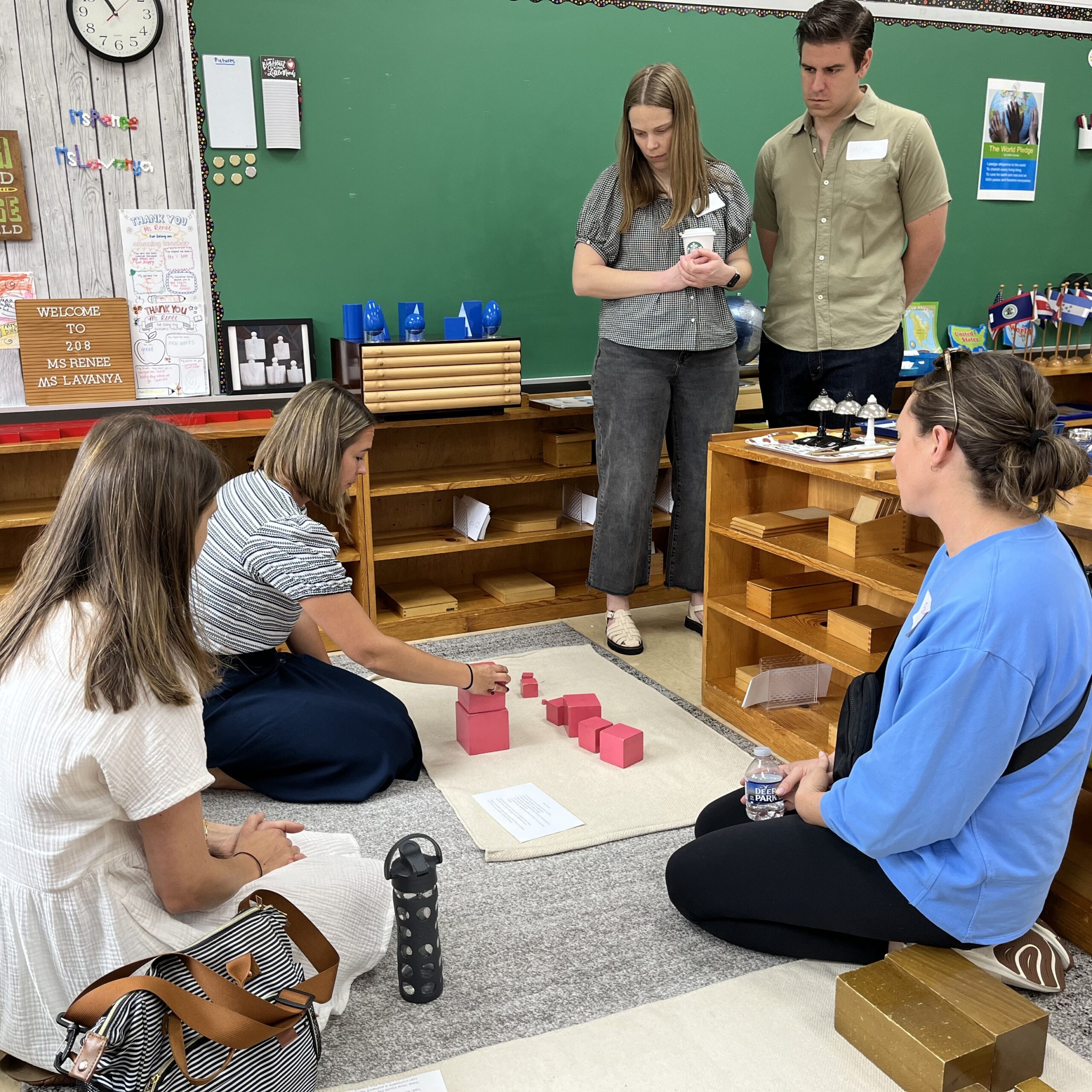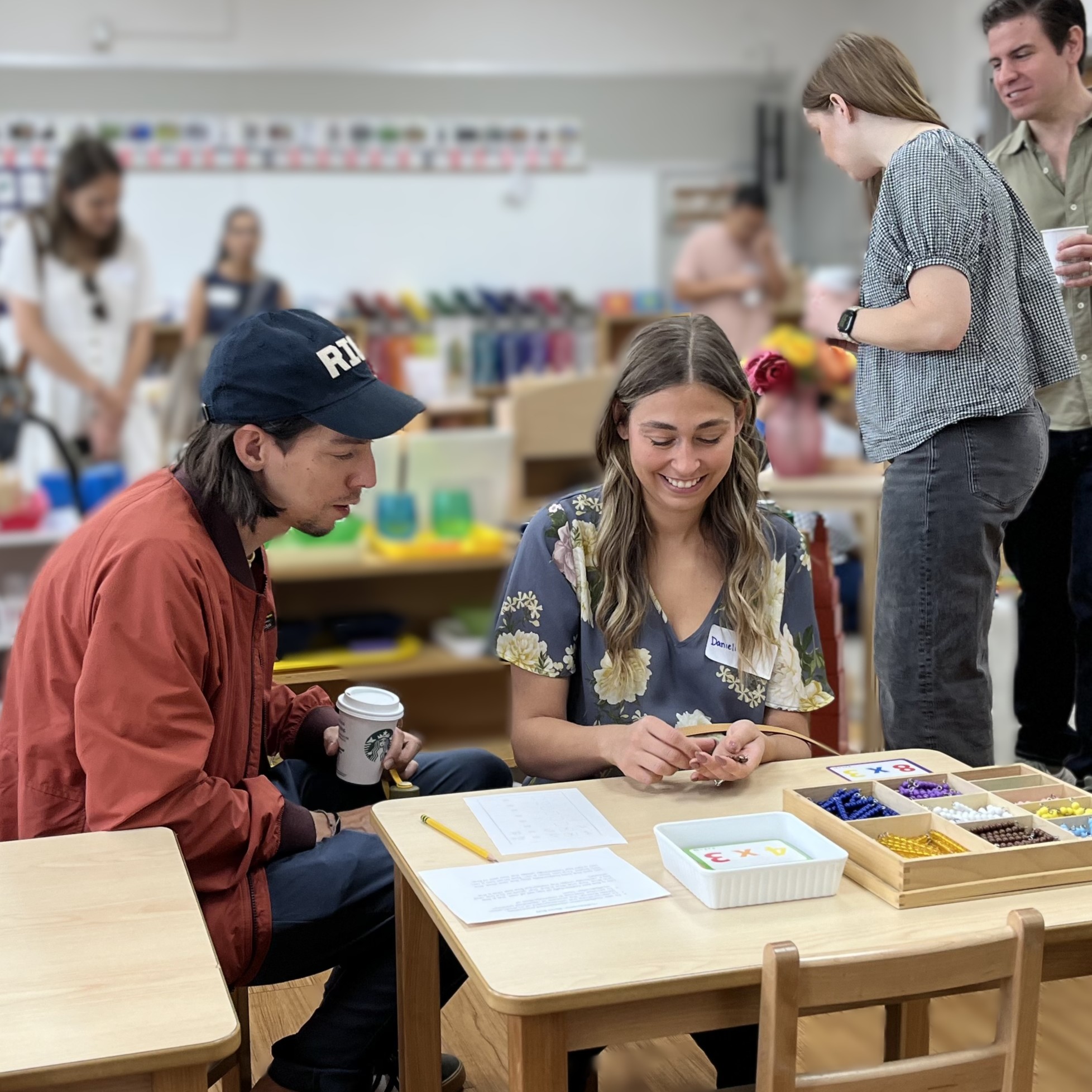 Along the way, you’ll explore the materials, see the progression of lessons, and even receive a few lessons yourself from our faculty. It’s a rare opportunity to connect with what your child experiences every day, how each stage builds on the last to support your child’s growth, and how it differs and is more individualized than a traditional educational setting.