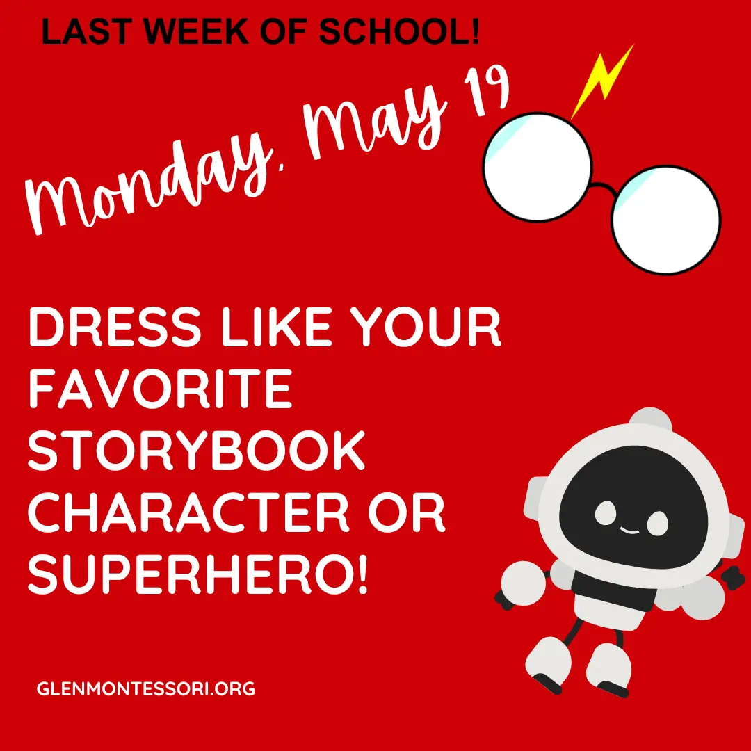 The Glen’s Children’s House team hosts a Spirit Week each year. Each day is a different theme, and this year we have: