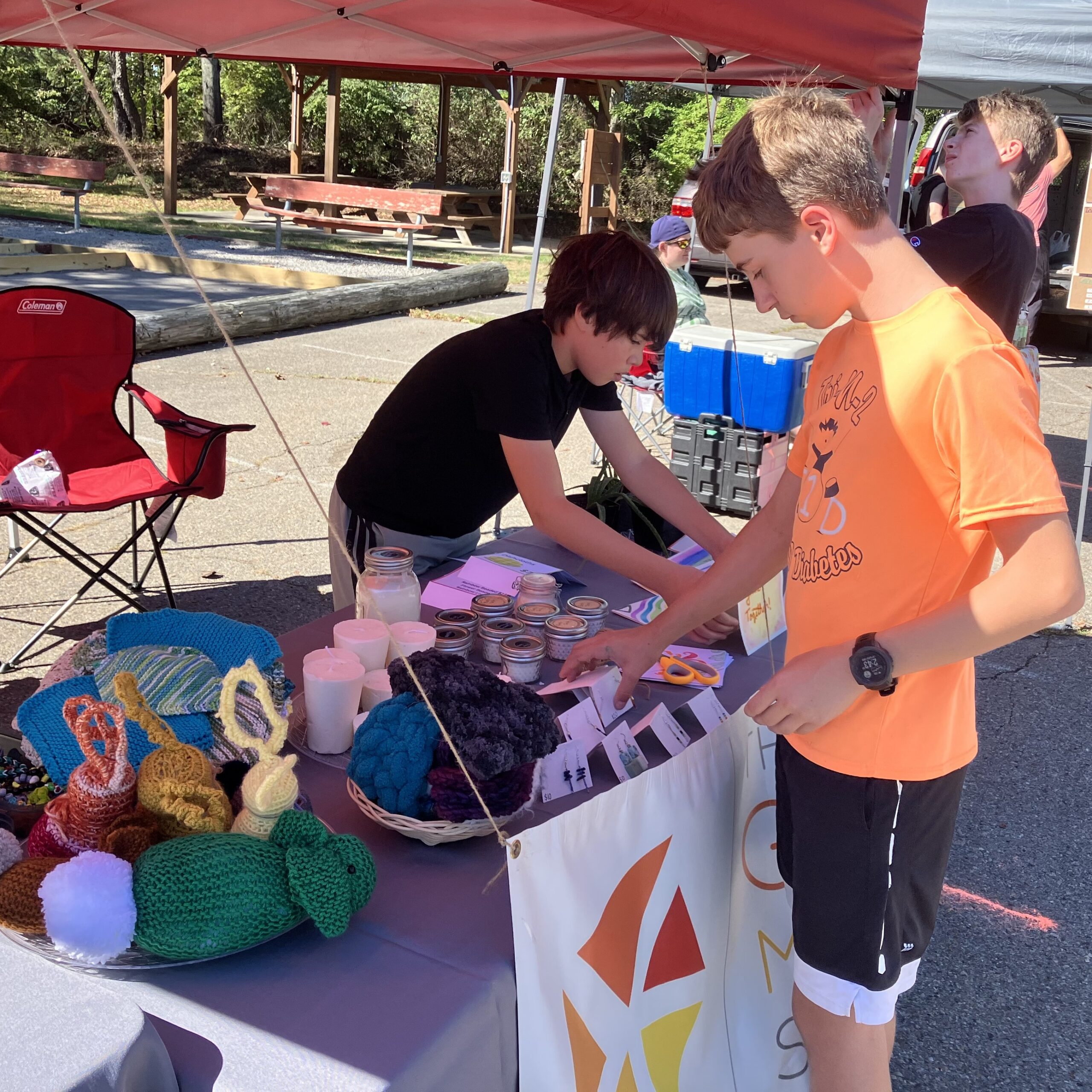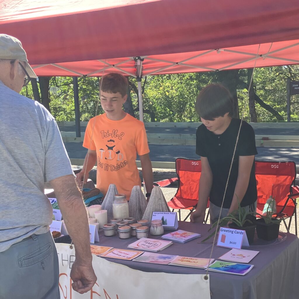 Led by 8th-year students in managerial roles, the group manages inventory, maintains financial spreadsheets, produces high-quality goods, and interacts directly with customers and suppliers. This year, The Glen’s Middle School Micro Economy established its business name, Middle School Market, opened a checking account at a local bank, and set up shop at the Ross Township Farmers Market. Depending on production efforts each week, students have been selling items such as handmade jewelry, knitted and crocheted bunnies, upcycled book trees, watercolor greeting cards, hand-poured scented candles, fire starters, dishcloths, headbands, hats, mittens, and apple butter.