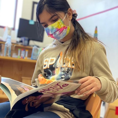 The first venture is called Diverse Books in Little Hands. Upper Elementary students intentionally curated a library for each Glen classroom (13 in all – Birth to Three, Children’s House and Elementary!) that represents characters who look, sound, and live like our students through culture, ethnicity, race, and family dynamics. Working together, upper elementary students created a website (available only to Glen classrooms – sorry!) that holds audio recordings of upper elementary students reading these diverse books for pre-and early-readers to read and follow along with the text.