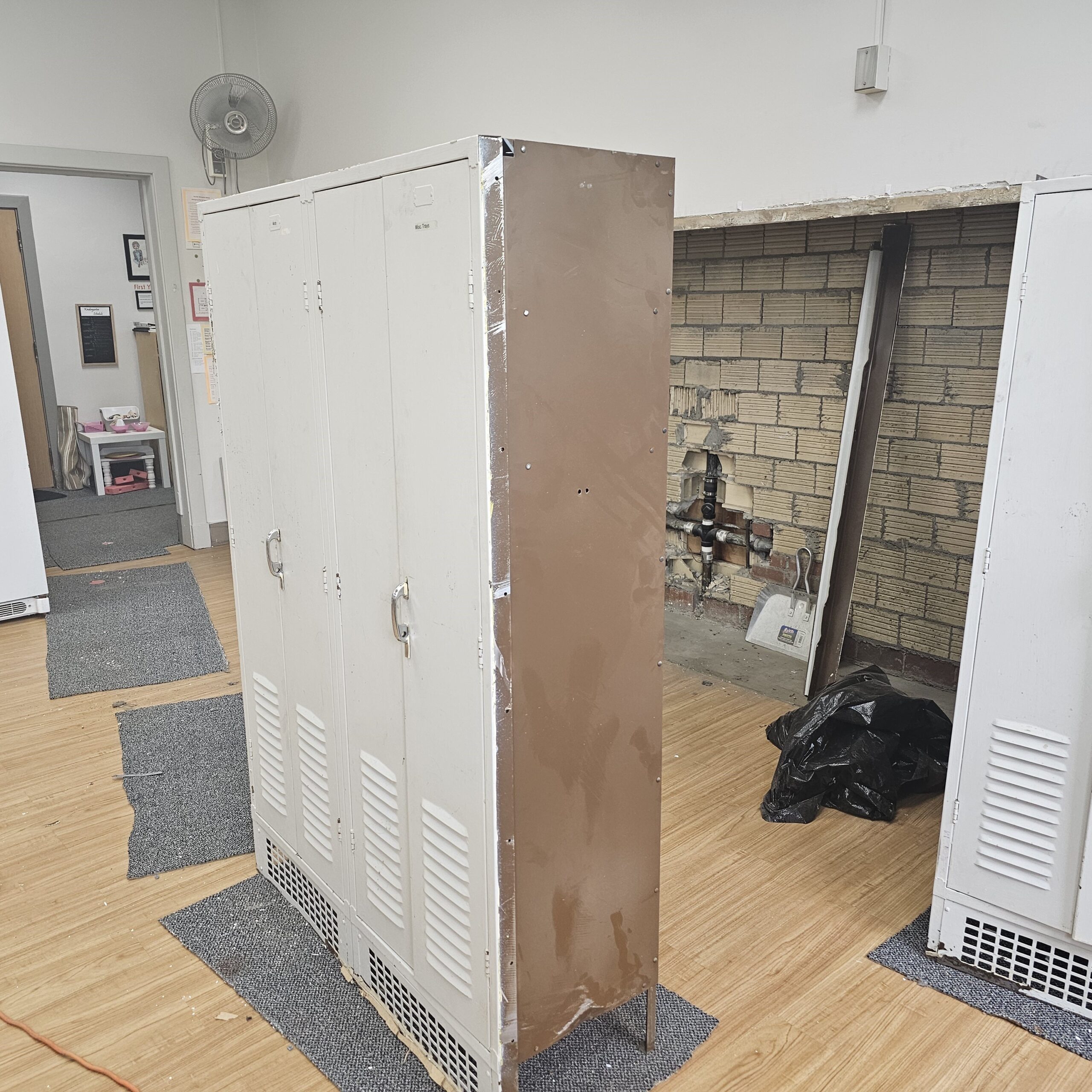 Lockers have been removed from all classrooms! Framing and drywall have been started to install cabinets and counters, providing usable storage and functional classroom space!