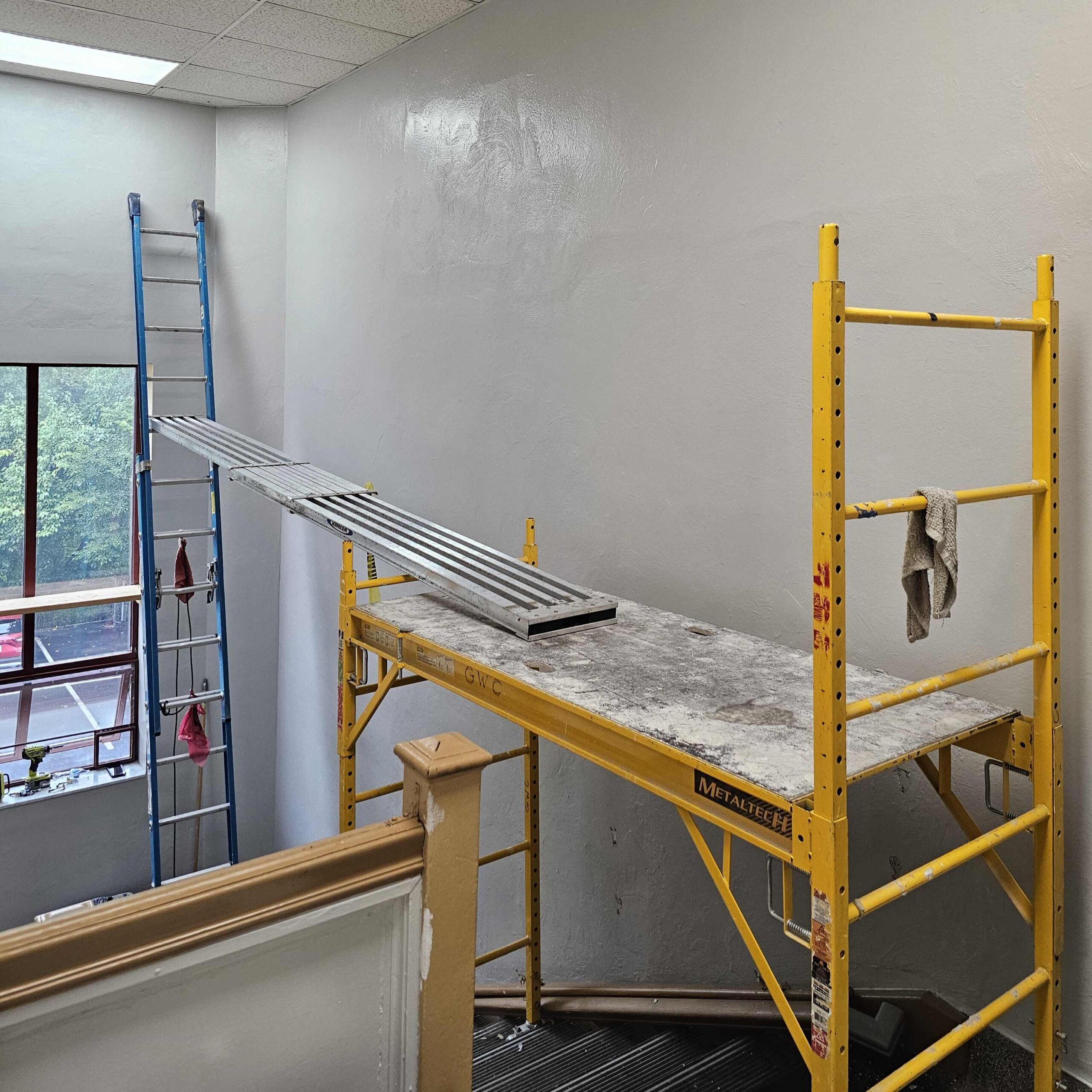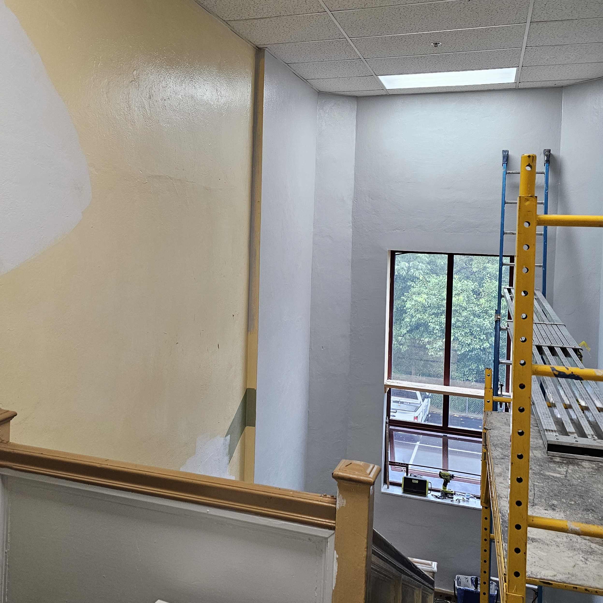 The ceiling tiles on the 1st-floor and 2nd-floor hallways (outside the office) have been replaced!