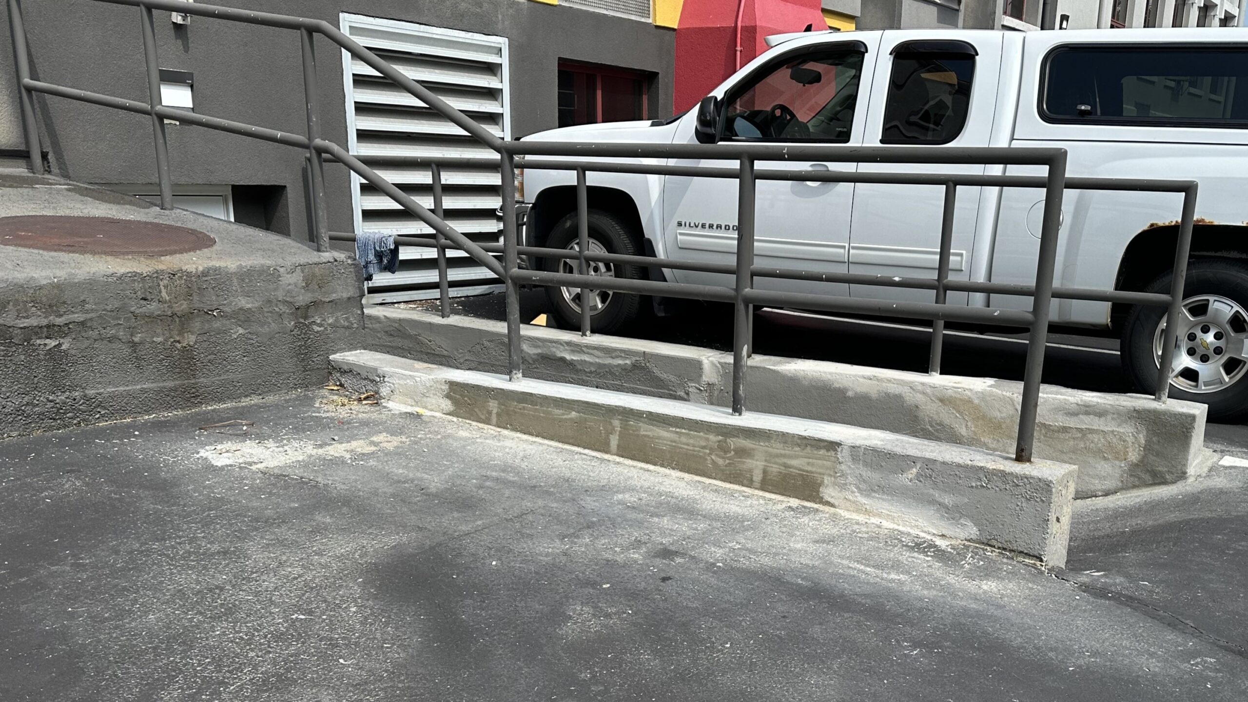 The concrete walkway that leads to the boiler room at the rear of the building has been repaired; the project has been completed. The concrete in the front of the building (sidewalks) will be replaced in July.