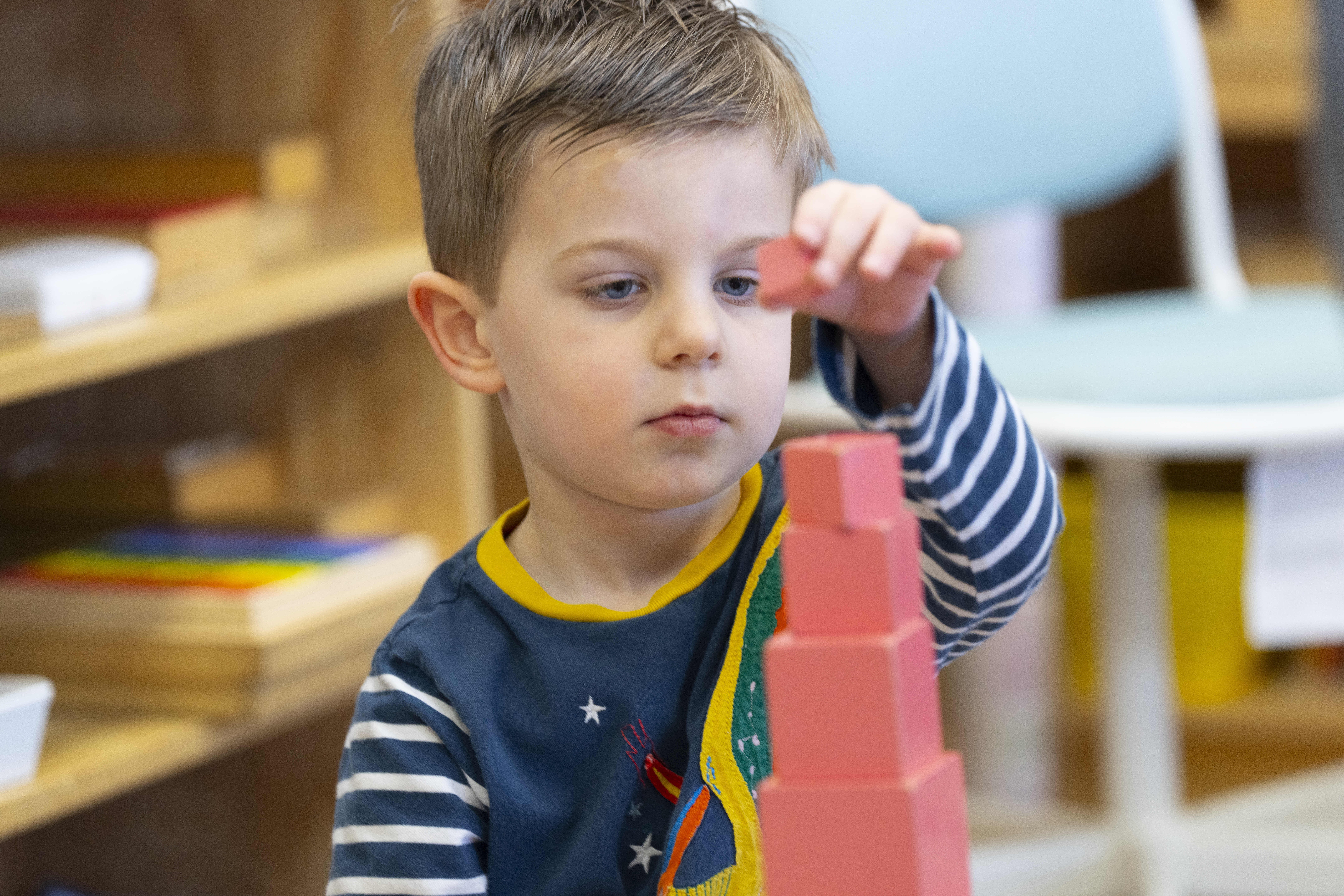 Child-directed work: Children work at their own pace and make creative choices. Consequently, children become joyous learners, intrinsically motivated with sustained attention. Read more about what it means to Follow the Child.